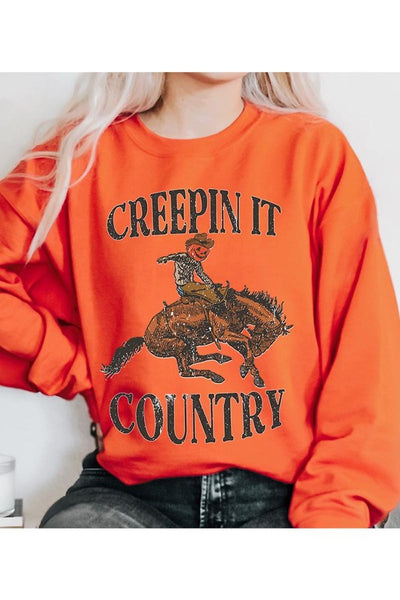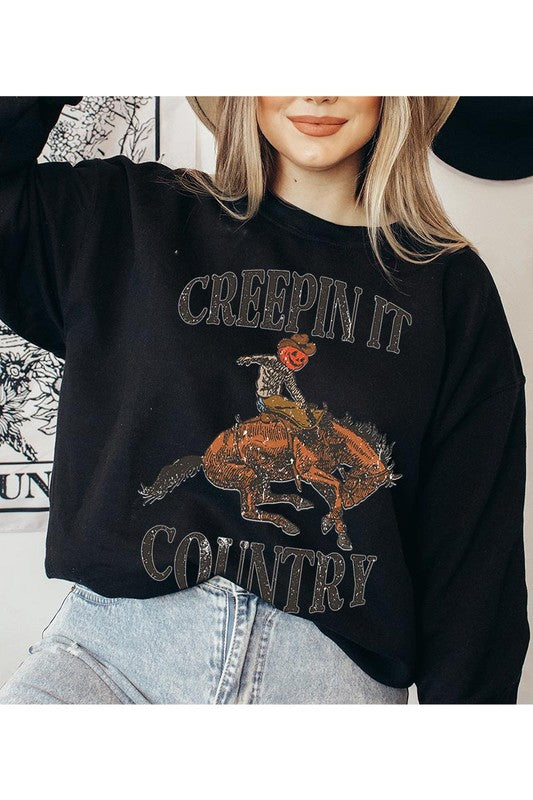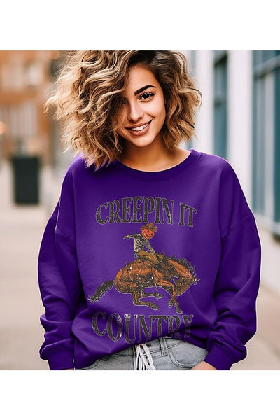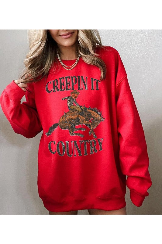 CREEP IT COUNTRY,WESTERN HALLOWEEN UNISEX FLEECE SWEATSHIRT,GRAPHIC TEE,GRAPHIC TSHIRTS,TSHIRTS,TEES