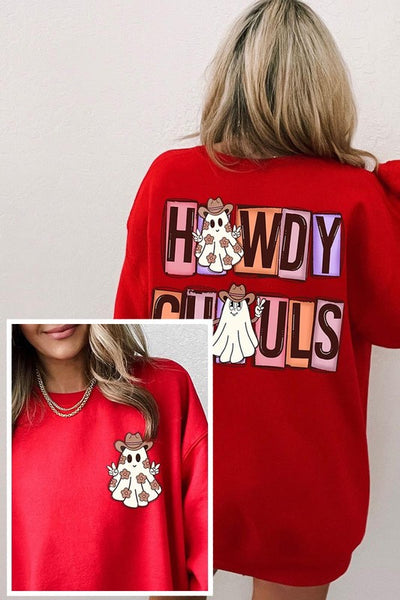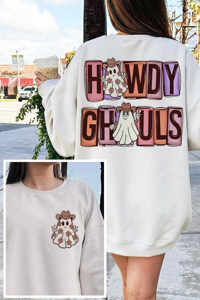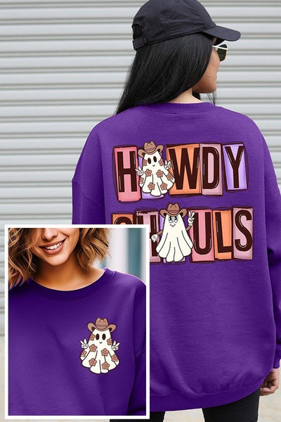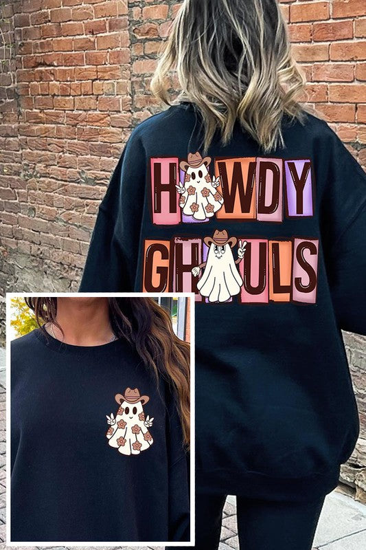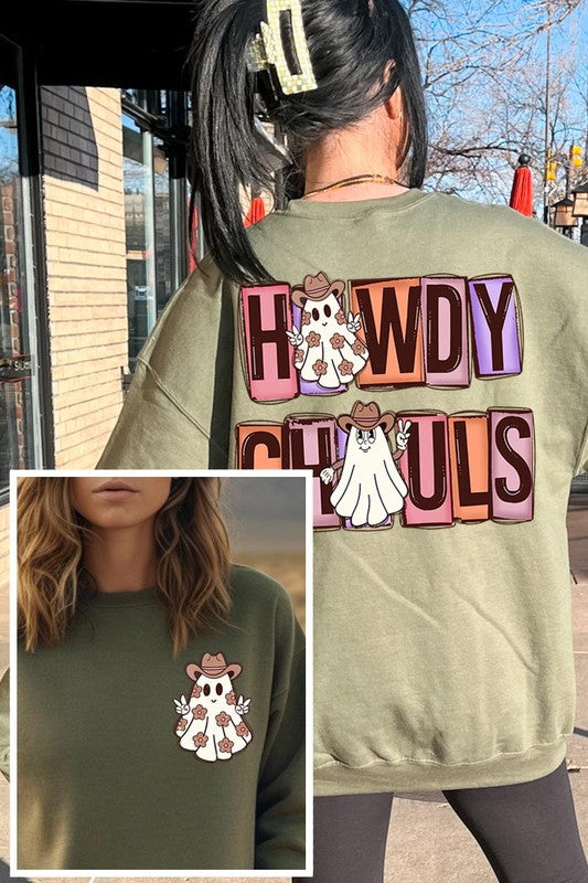 HOWDY GHOULS,COWBOY GHOST,WESTERN,HALLOWEEN UNISEX FLEECE SWEATSHIRT,GRAPHIC TEE,GRAPHIC TSHIRTS,TSHIRTS,TEES