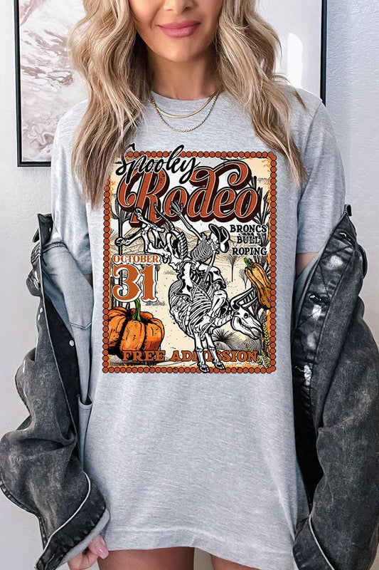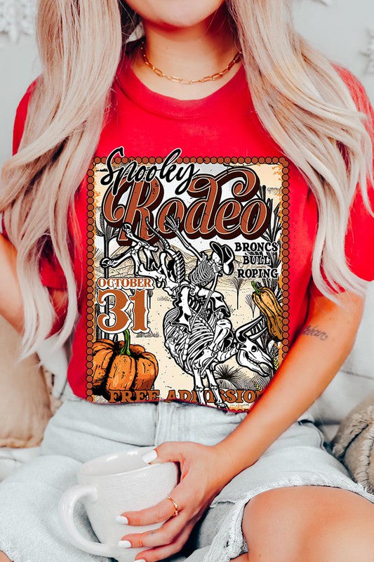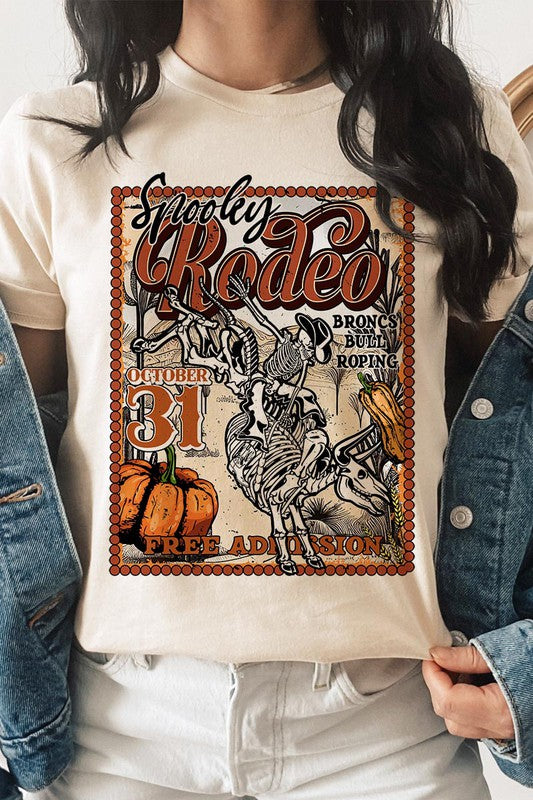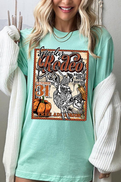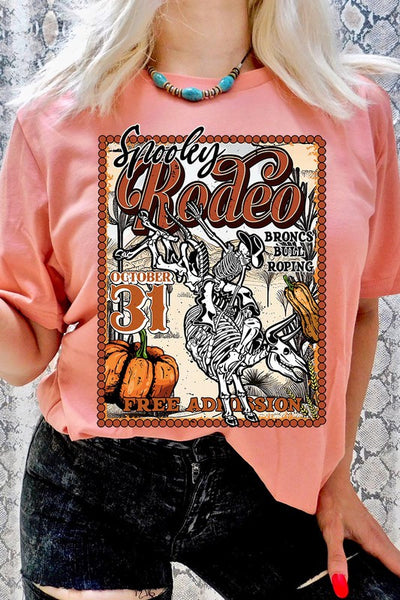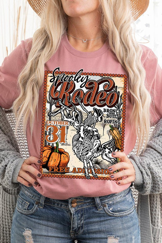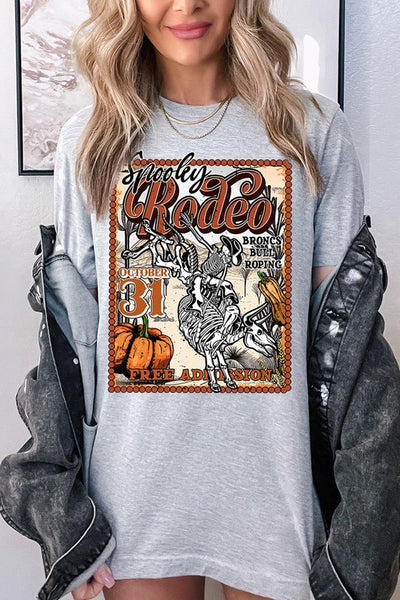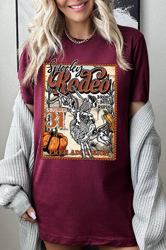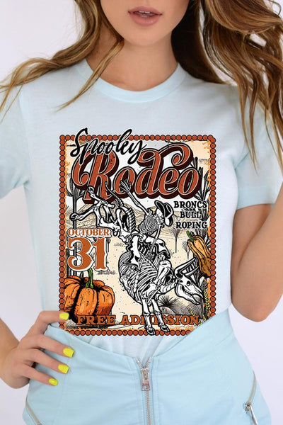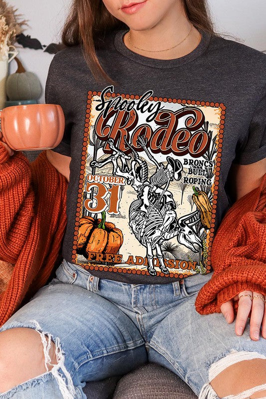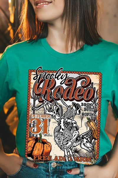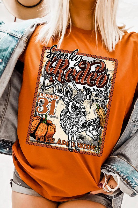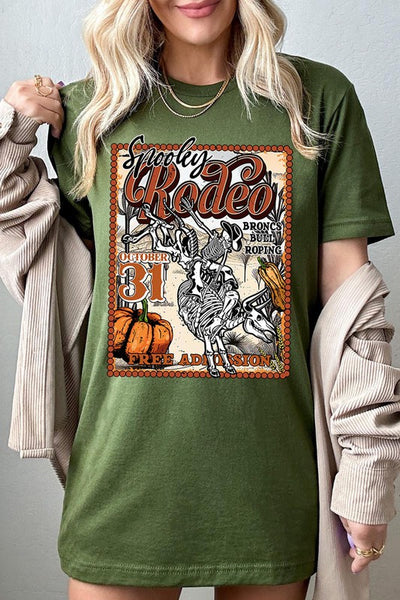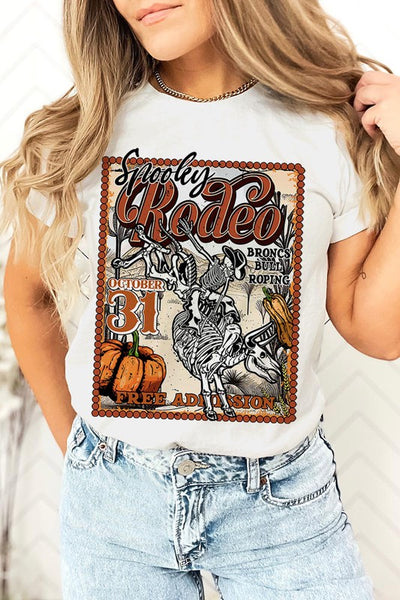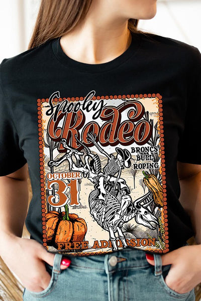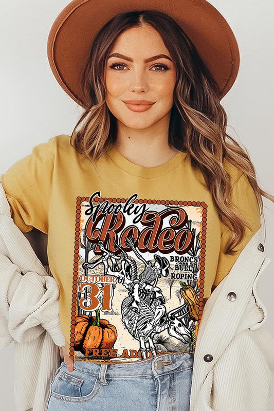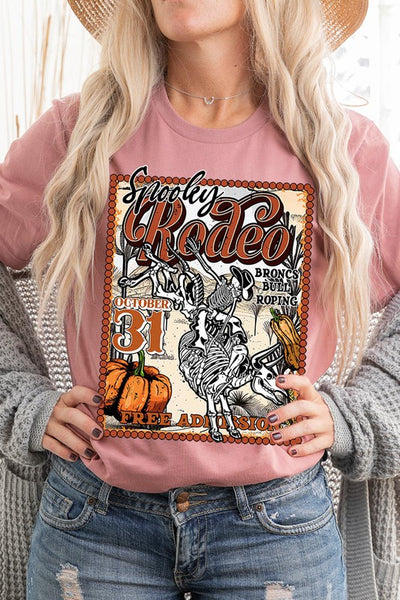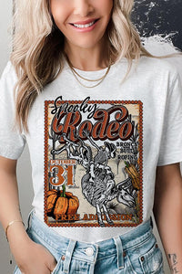SPOOKY RODEO,SKELETON BRONC RIDER,HALLOWEEN UNISEX SHORT SLEEVE,GRAPHIC TEE,GRAPHIC TSHIRTS,TSHIRTS,TEES