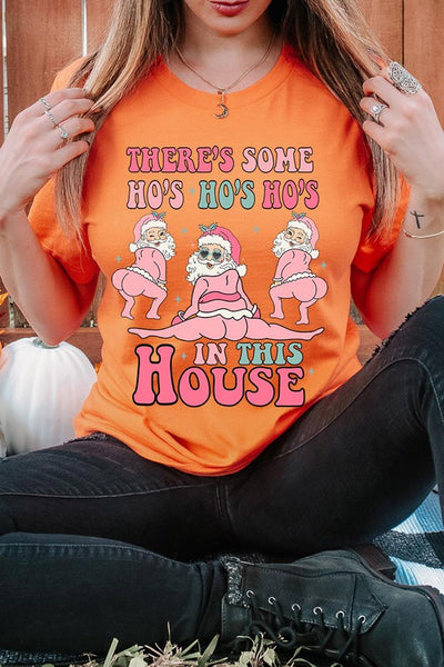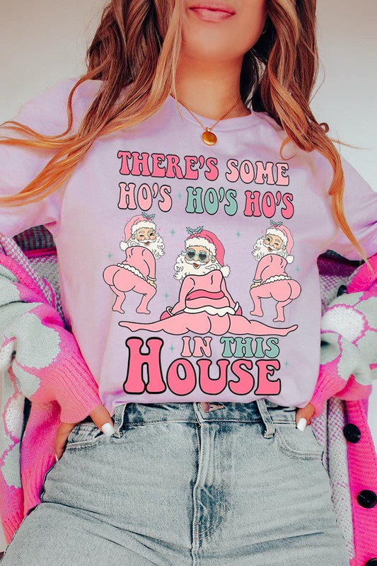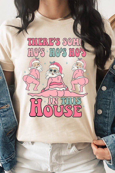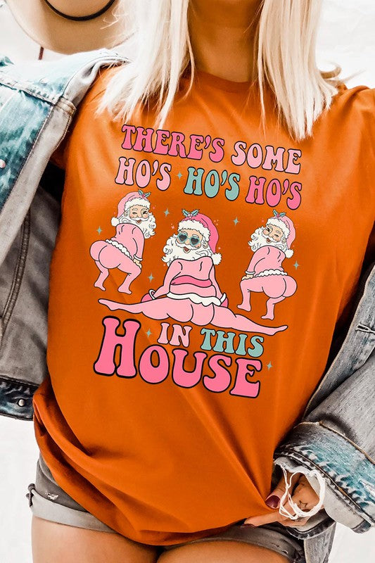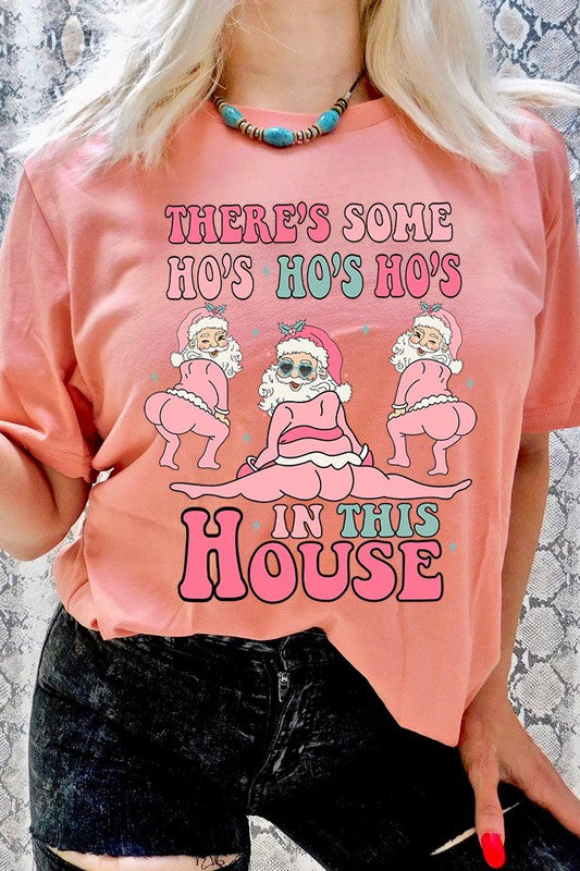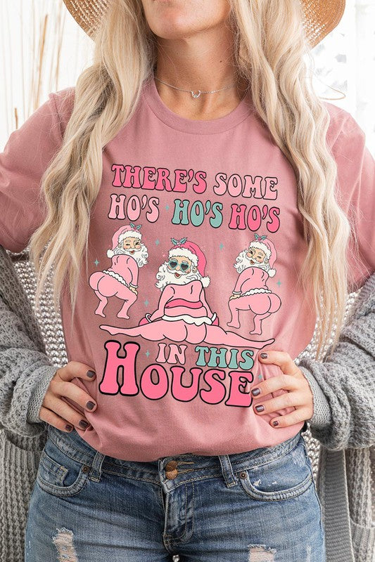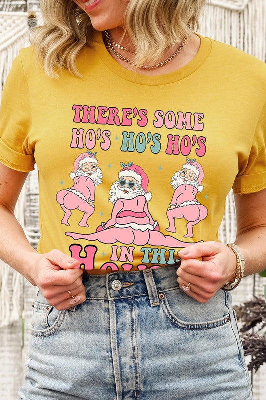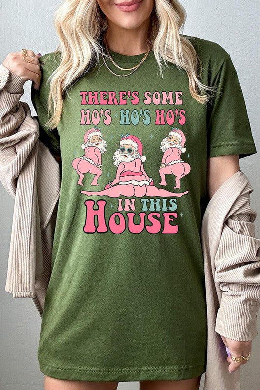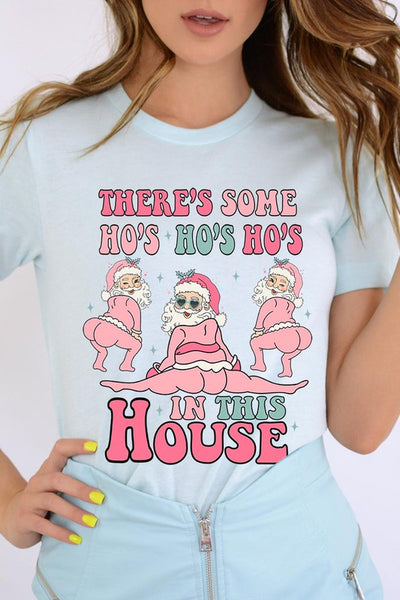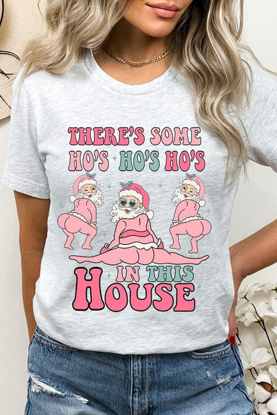 THERE'S SOME HO'S IN THIS HOUSE,SANTA CLAUS,CHRISTMAS UNISEX SHORT SLEEVE,GRAPHIC TEE,GRAPHIC TSHIRTS,TSHIRTS,TEES