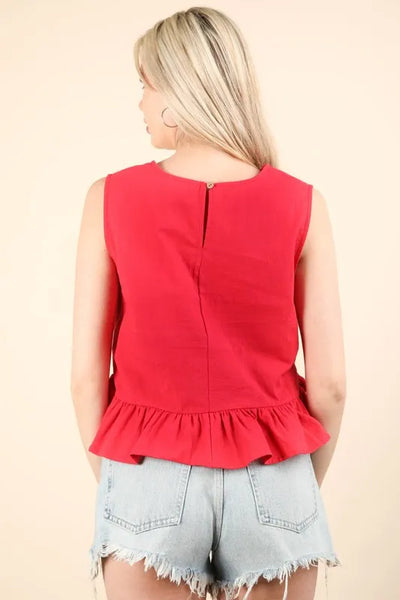 VERY J Side Tie Detail Ruffled Sleeveless Top