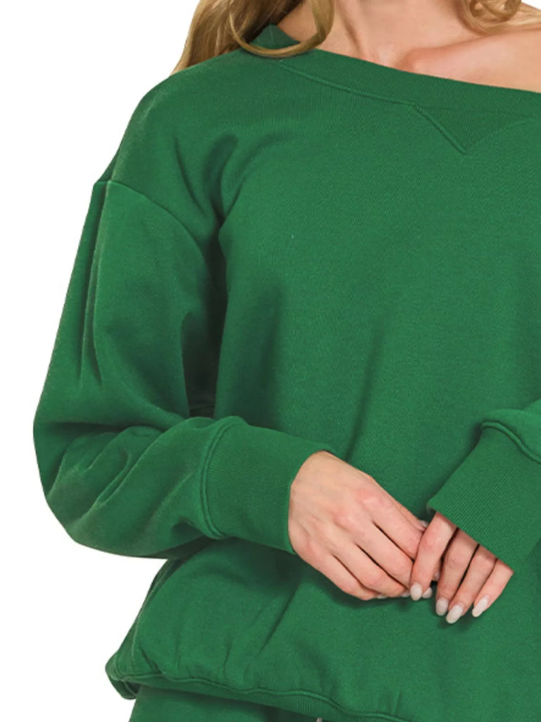 Zenana Fleece Boat Neck Sweatshirt and Shorts Set