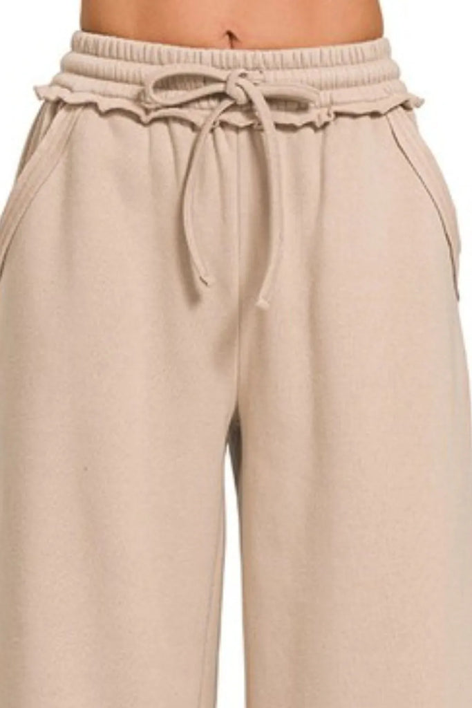 Zenana Fleece Exposed Seam Wide Leg Sweatpants