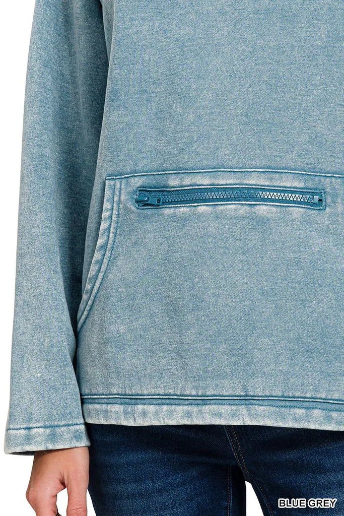 Zenana Fleece Washed High Neck Kangaroo Pocket Sweatshirt