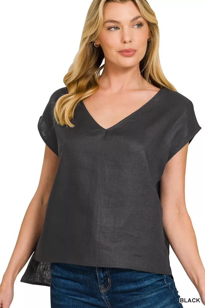 Zenana Linen V-Neck Sleeveless Top