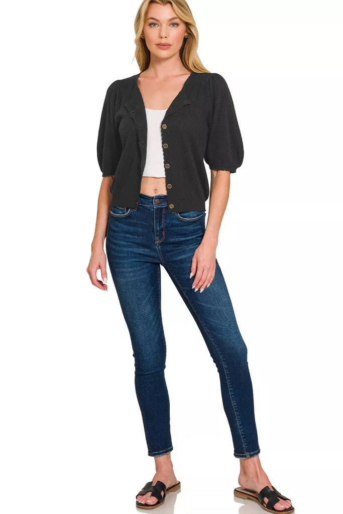 Zenana Puff Sleeve Wool Sweater Cardigan