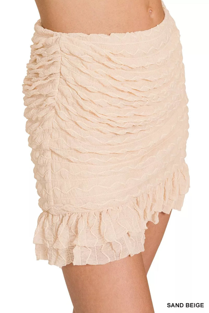 This ruched mini skirt with built-in shorts offers a trendy and practical design for your wardrobe. The ruched detailing adds texture and visual interest to the skirt, creating a flattering silhouette. With built-in shorts, this piece provides comfort and ease of movement, making it perfect for active days. The mini length adds a touch of flirtiness to your look, ideal for both casual and dressier occasions. Stay stylish and comfortable all day long with this versatile ruched mini skirt with built-in shorts.