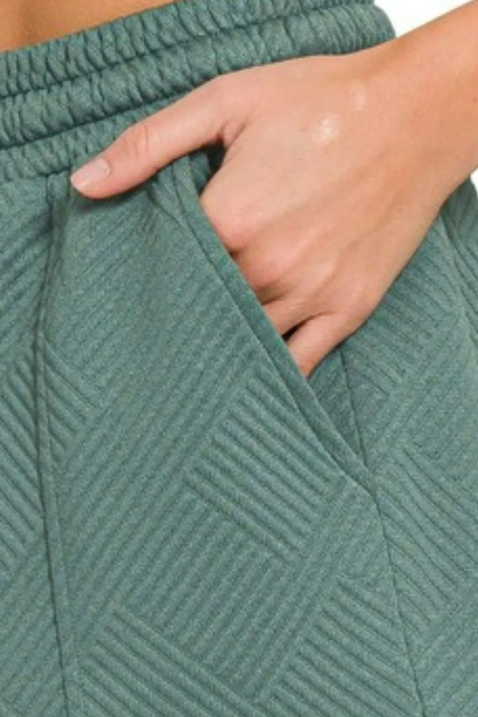 Zenana Textured Knit Jacquard Drawstring Shorts